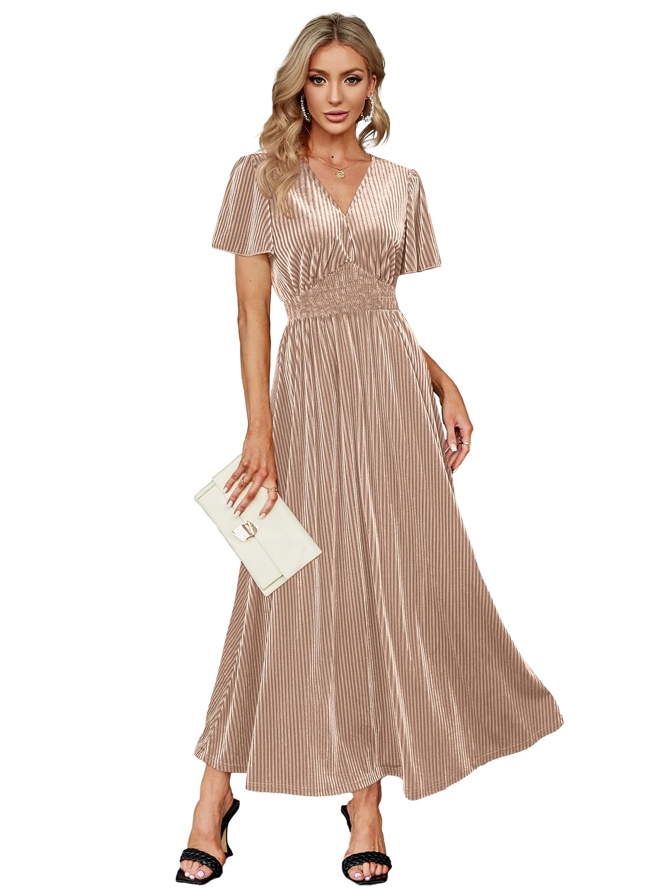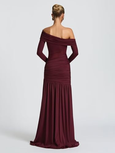 Women's Sexy Off Shoulder Maxi Dress Long Sleeve High Slit Ruched Long Dress Mesh Party Cocktail Dresses