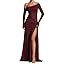 Women's Sexy Off Shoulder Maxi Dress Long Sleeve High Slit Ruched Long Dress Mesh Party Cocktail Dresses