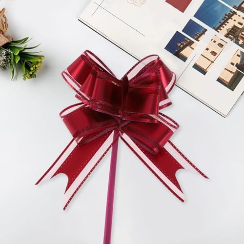Generic 10 Pcs Pull Bows Metallic Matte Finish Pull Ribbon Plastic Wine Red 19"