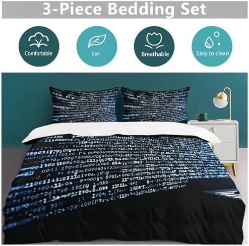 Programmer Programming Code 3 Pieces Bedding Set Super Soft Cozy Duvet Cover Set Lighweight Microfiber Comforter Cover with Zipper for Adult Bedroom Decor All Season 86"x70"