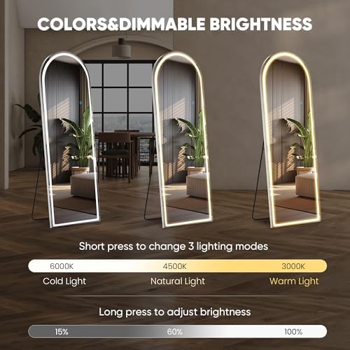 - [Elegant Arched Mirror]20" x 63" LED floor mirror combines full-length functionality with artistic arched detailing, offering a distortion-free reflection for outfit checks, fitness routines, or home decor. The gracefully curved top frame elevates any space, serving as a statement piece that effortlessly enhances modern, bohemian, farmhouse, or glam interiors.