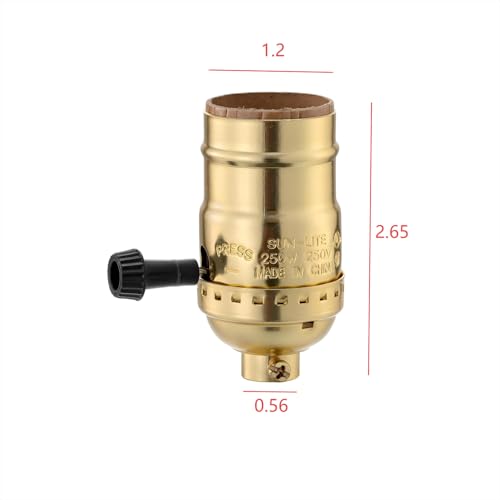 3-Way Lamp Socket Replacement with Switch - E26 Threaded Base & Knob for Table/Floor Lamps Repair Kit, Dimmable Light Bulb Socket Parts (Gold)