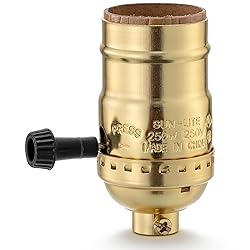 The lamp socket is made of sturdy aluminum material in polished brass color, the inner insulating cardboard isolates the metal case and the socket. 3-way lamp socket is compatible with e26 base. Switch the light intensity of low, medium and high bulbs by twisting the lamp socket knob.(Note:3-way lamp socket are suited for 3-way bulbs only) 【Easy to use】 Just a few minutes to set up - 1: Thread the wire through the cap hole; 2: Tying a ul knot(prevent falling off); 3: wind the wires around the screws; 4: Cover the housing; 5: Screw in a bulb; Our sockets will come with instructions to help you finish the process perfectly. Simple upgrade to your old lamps or create a new lamp, the three-way socket would be a good choice. Get this 3 way lamp socket for your DIY table lamps, floor lamps and industrial decorative lamps. Please feel free to contact us if you have any problem with the ceiling plate, we are committed to making it right for you. quick and friendly service will be provided!