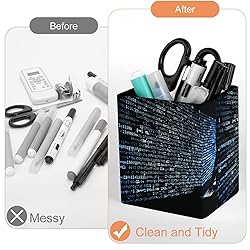 BSCKKDMN Programmer Programming Code Pen Holder Waterproof PU Pencil Cup Women Makeup Brush Holder Cute Office Desk Organizer Accessories for Home Office