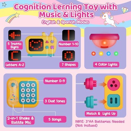 - Early Education & Bilingual Learning Toys for Toddlers 1-3 - Help your toddler learn in English and Spanish! This educational toy for 1 2 3 year old introduces numbers 1-10, 26 letters, 7 shapes, 4 colors, 5 traffic signs, fruit, weather, time, and seasons. Designed to strengthen fine motor skills and cognitive development, it’s a perfect sensory toy for toddlers 1-3 and functions as both a busy board and busy book alternative.