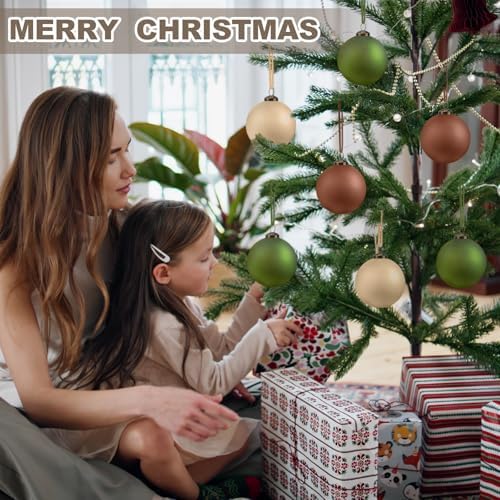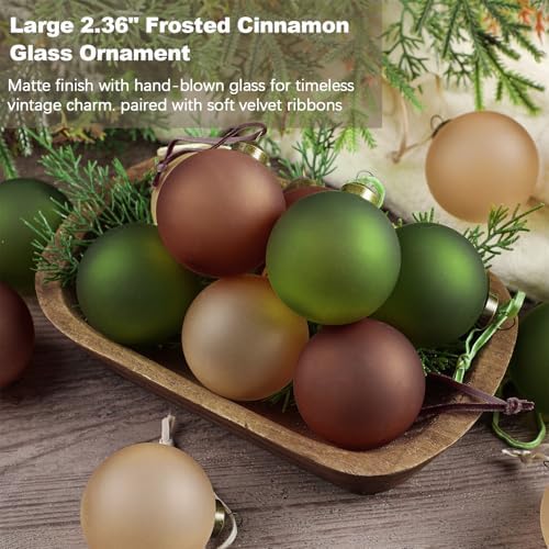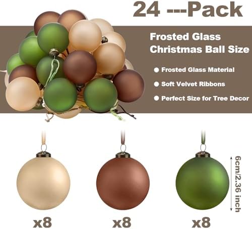 - Glass Christmas Ball Ornament Set: this set includes 24 frosted glass Christmas ball ornaments in beige, light brown, and green, 8 each; Each ball comes with a velvet hanging string; The matte ornaments add a luxurious visual appeal, making them ideal for neutral Christmas decorations and vintage Christmas decorations