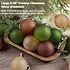 Soulchen 24 Pcs 2.36 Inch Neutral Frosted Glass Christmas Ball Ornaments Decor Hand Blown with Velvet Ribbon for Xmas Tree Vintage Rustic Farmhouse Decoration Beige, Light Brown, Green