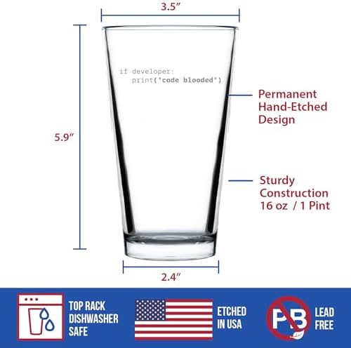 Give them a glassware update with a coding themed cup scripted with witty syntax, the perfect gift that keeps on refreshing. - Bar Quality Pint Glasses - 16 oz pint glass with heavy weighted bottom suitable for a hoppy ipa, a refreshing pilsner, or delicious craft stout. - Etched text (not printed) - The text is engraved by hand in Colorado and will never wear off - Individually gift boxed glasses designed to ensure safe delivery - Dishwasher safe! Great for daily use. Great beer gift if you're looking for fun gifts for your friends and family. Whether you're wishing a big happy birthday to your favorite beer lover like your best friends, brother, or coworkers, this unique glassware will leave your recipient laughing at the memories created with this gift for years. The design is hand engraved (not printed) into the durable, bar quality pints glass so that it never wears off. These are fantastic presents from that will be cherished for years to come. This isn’t a cheap novelty gag gift. This is quality, dishwasher-safe glassware that is perfect for use as your daily glass... engraved in the USA to boot! All Bevvee glasses are individually boxed and protected for safe delivery. The carefully etched text will never wear off with heavy washing because of the engraving. Each detail is carefully engraved by hand by skilled artisans in our small shop in Northern Colorado. We know you probably have a lot of gift ideas for your favorite beer lover, so thanks for considering our Bevvee Pint Glasses. Cheers!