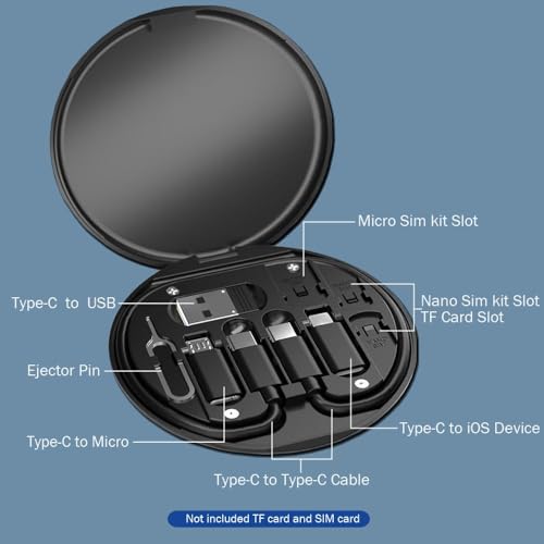 USB C Adapter Cable Kit, Multi Charging Cable Case Convertor USB C to iOS Device/Type C/Micro/USB A Adapter, Data Transfer Contains Card Slot for Traveling(Black)