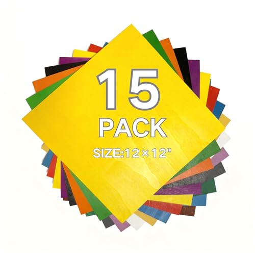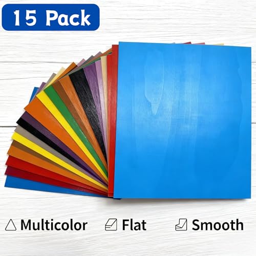 15 Pack Colored Double-Sided Plywood Sheets, Solid Color Craft Wood for Laser Cutting, Engraving, Model Making, DIY Art, Scroll Saw Projects,12x12x1/10 Inch, 2.5mm