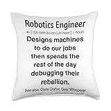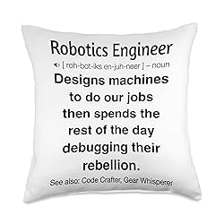 Funny robotics engineer design for robot builders and AI engineers who live for automation, coding, and circuit board wizardry. Great for fans of tech humor and engineering life. Perfect gift for any robotics engineer working on mechanical design or telling robot jokes. Ideal for STEM lovers who mix wires, logic, and laughs. 100% spun-polyester fabric Double-sided print Filled with 100% polyester and sewn closed Individually cut and sewn by hand Spot clean/dry clean only
