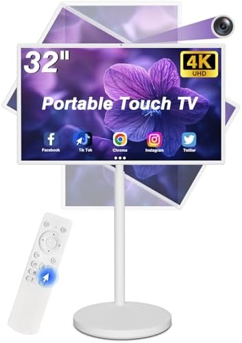- 32 inch Portable FHD Touch Screen TV Monitor: The portable smart TV features a crisp 1920x1080 Full HD touch screen with built-in dual speakers, perfect for streaming, browsing, and video calls. With a built-in HD camera and remote, . Whether you're relaxing or working, this smart portable tv fits seamlessly into your lifestyle.