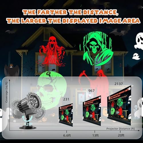 - 【Adjustable Projection Angle & Size + Superior Dark Effect】 ⚙️ Customize Your Haunted Experience: Adjust the projection head through a 180° range for perfect placement and simply move the unit closer or farther from a surface to control the image size from intimate to massive. Pro Tip: For the sharpest, most terrifying effect, use in complete darkness!