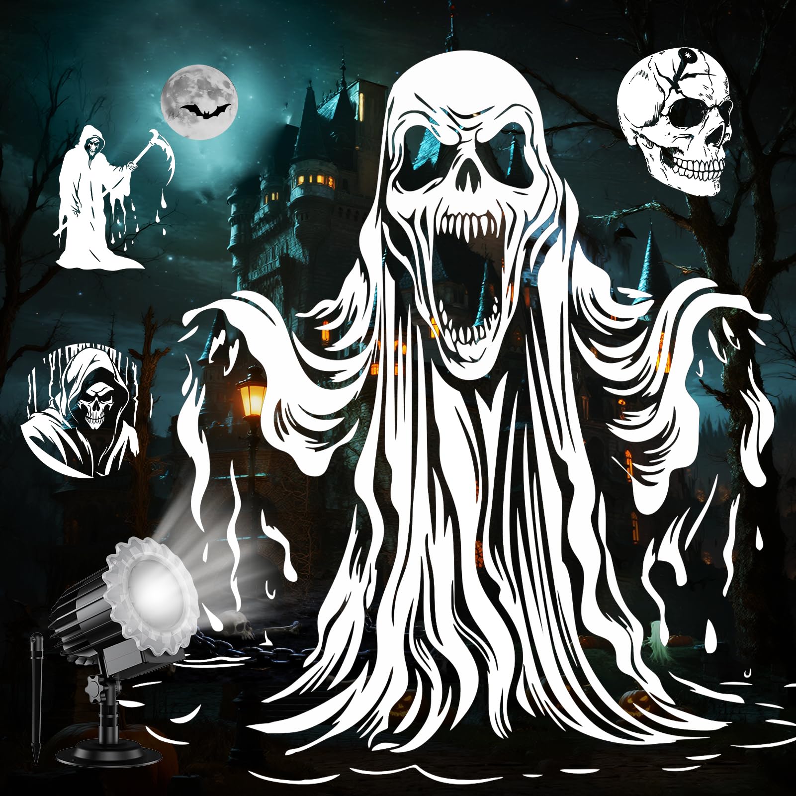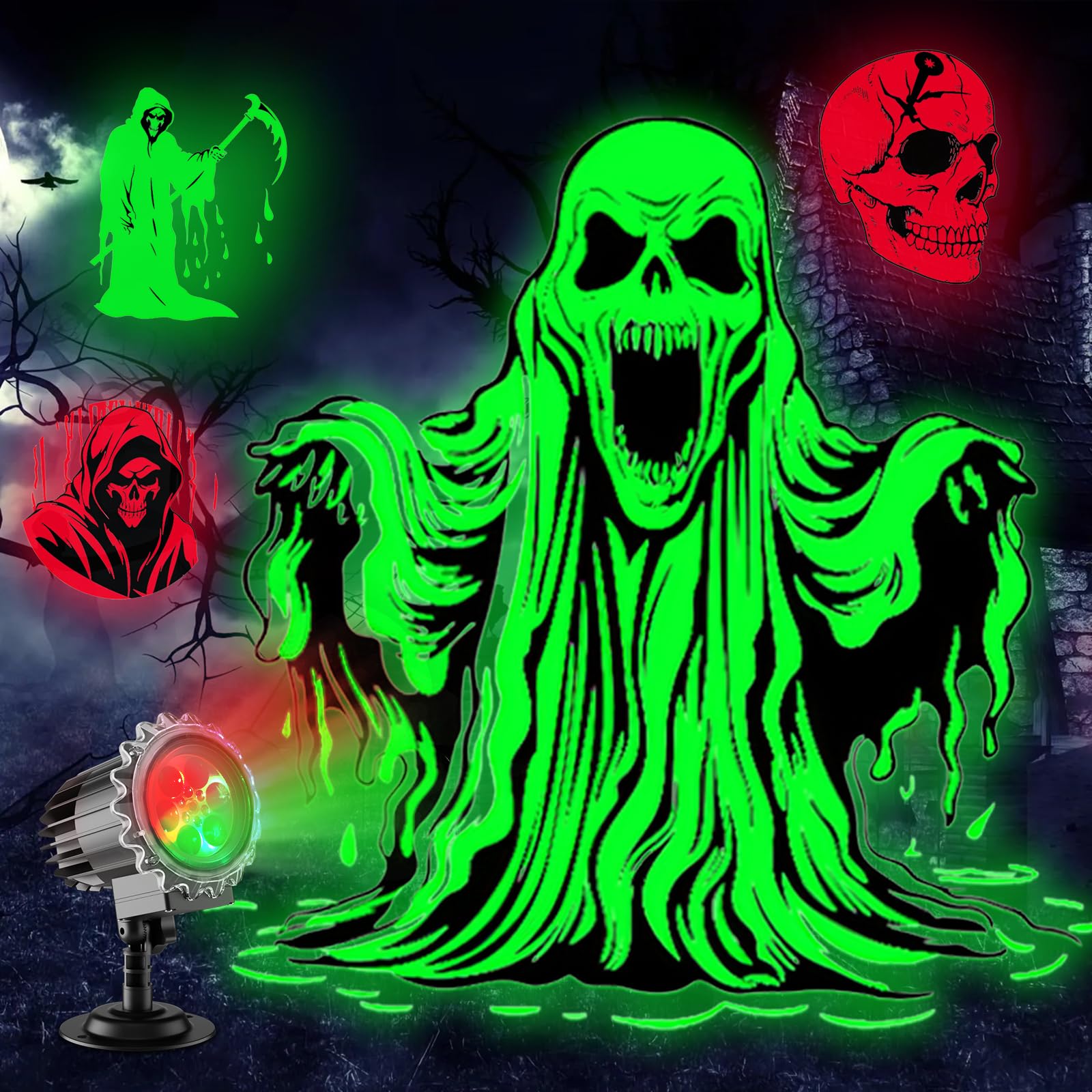 Halloween Ghost Projector Lights Outdoor - 3D Indoor Dynamic Skull Decoration, Waterproof,Víspera de Todos Los Santos