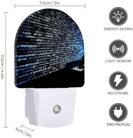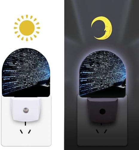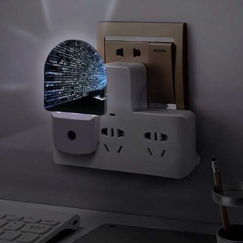 Programmer Programming Code Night Lights Plug Into Wall Nightlight with Dusk to Dawn Sensor LED Lamp for Women Men Room Decor Bedroom Bathroom Kitchen Hallway Stairways