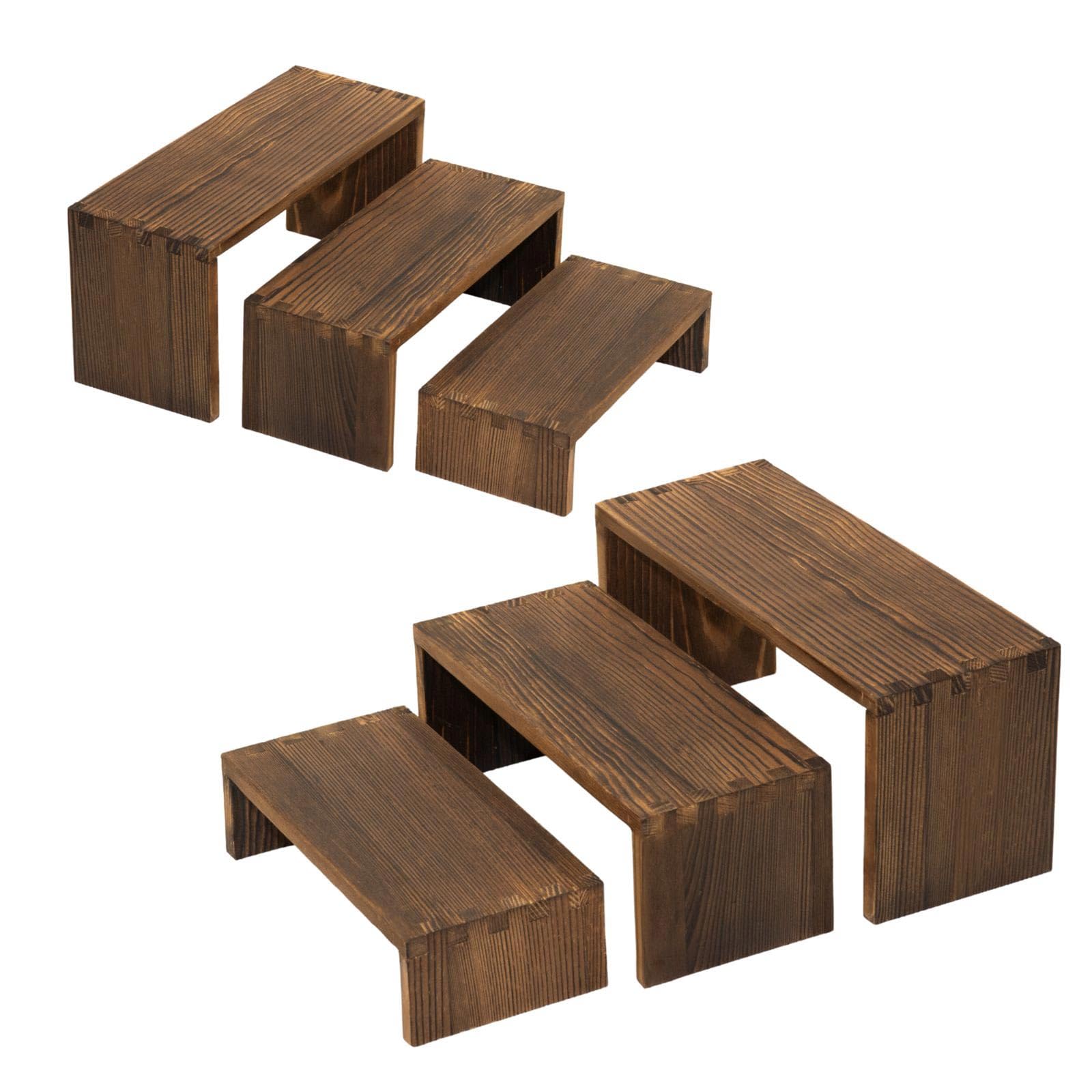 3-Tier Wood Display Riser 2 Set, Tiered Display Stand for Food, Kitchen, Desk & Party - Solid Pine Wooden Shelf & Organizer for Plants, Collectibles, Office (9.5/8.5/7.5 In)