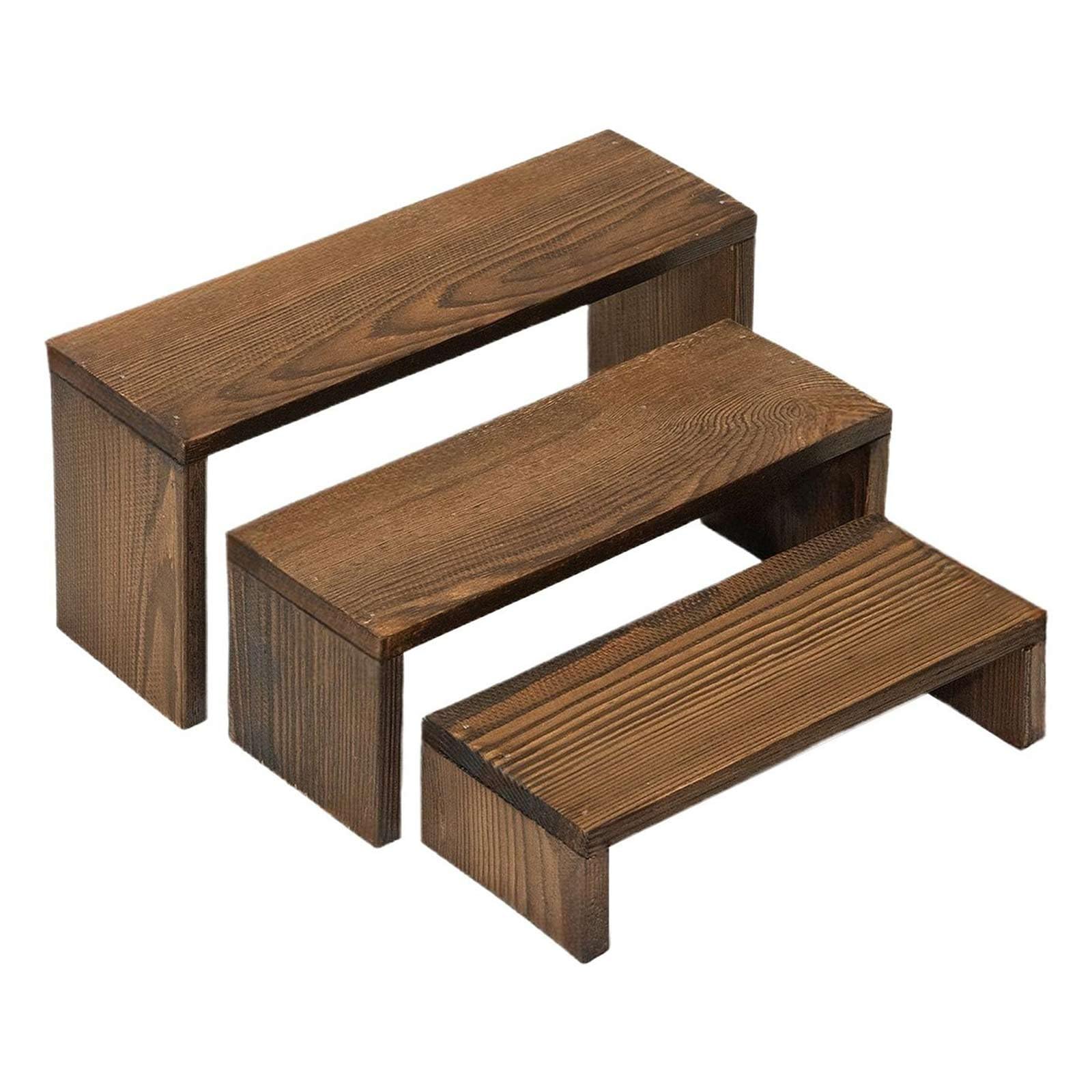 - VERSATILE TIERED DISPLAY STAND FOR ANY SETTING: This wooden display riser seamlessly combines style and functionality, making it ideal for various uses. It can serve as a perfume shelf, a stationery organizer, a kitchen spice rack, a plant stand, or a cupcake display for parties and vendor events. Ideal for showcasing collectibles, desserts, and more, it provides an elegant display shelf while keeping you organized