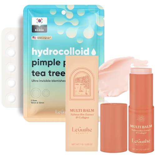 LE GUSHE Korean Pimple Patches & Face Balm Stick Bundle - 132 Dots Pimple Patches with All-in-One Face Balm Stick