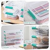 Secure Locking Clasp: Gray reinforced clasps protecting items from dust, and spills,ideal for long-term storage of documents, crafts, or small accessories Durable & Clear Material:Made of plastic, these transparent bins offer scratch-resistant surfaces and easy visibility to quickly locate contents Space-Saving Stackable: Uniform size allows vertical stacking to maximize cabinet or shelf space,perfect for organizing closets, pantries, and workstations Multi-Purpose Use: Versatile for storing office supplies, tools, or seasonal decorations,compact design fits under beds or in tight spaces Easy to Carry & Clean: Smooth handles on both sides for comfortable portability,wipe clean with damp cloth