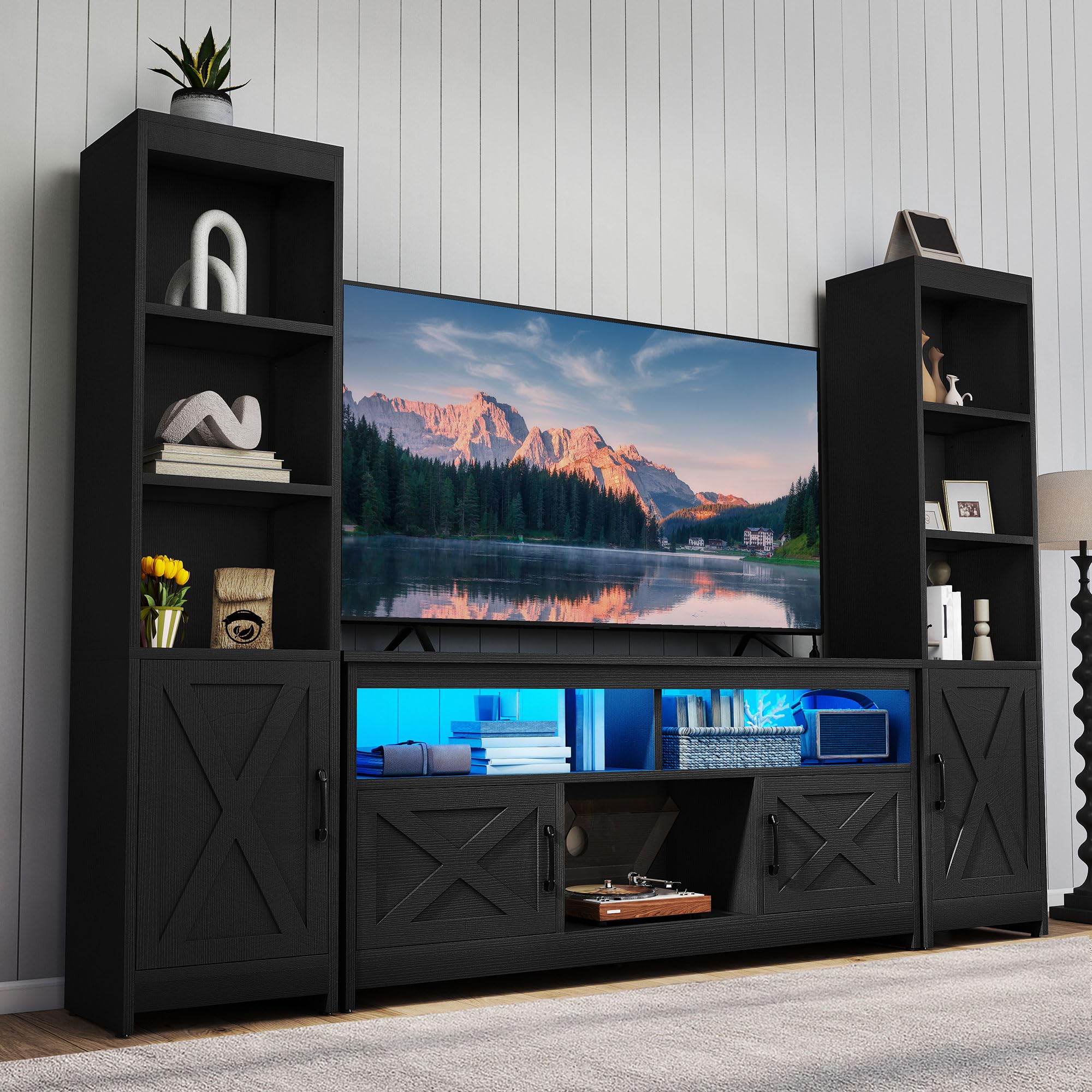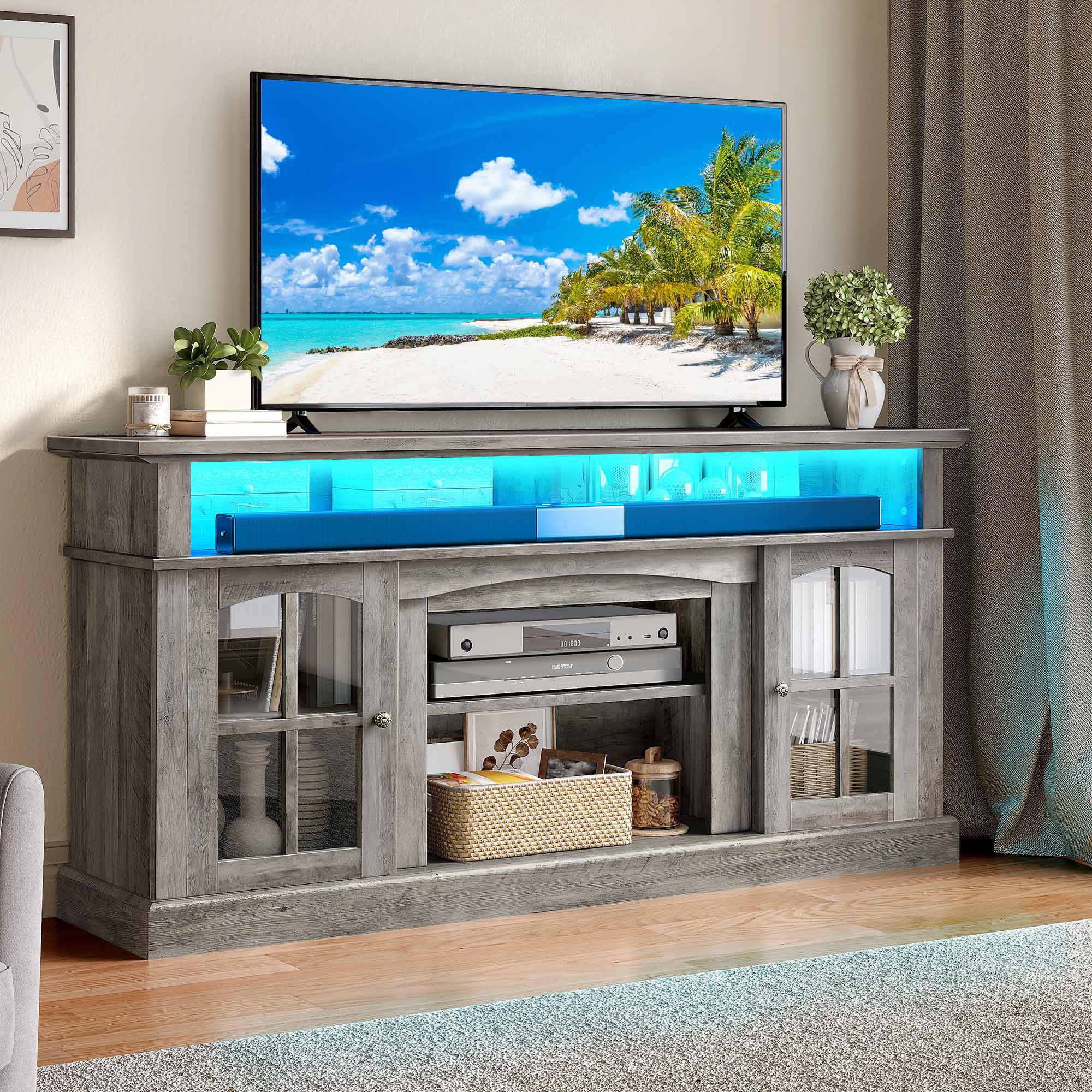 - Stylish & Spacious Storage: Tuck away clutter with this long entertainment center; Its two large cabinets discreetly store controllers, movies, and accessories, plus a wide, open shelf to proudly display your gaming console or soundbar