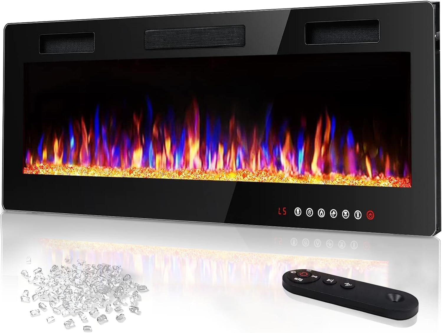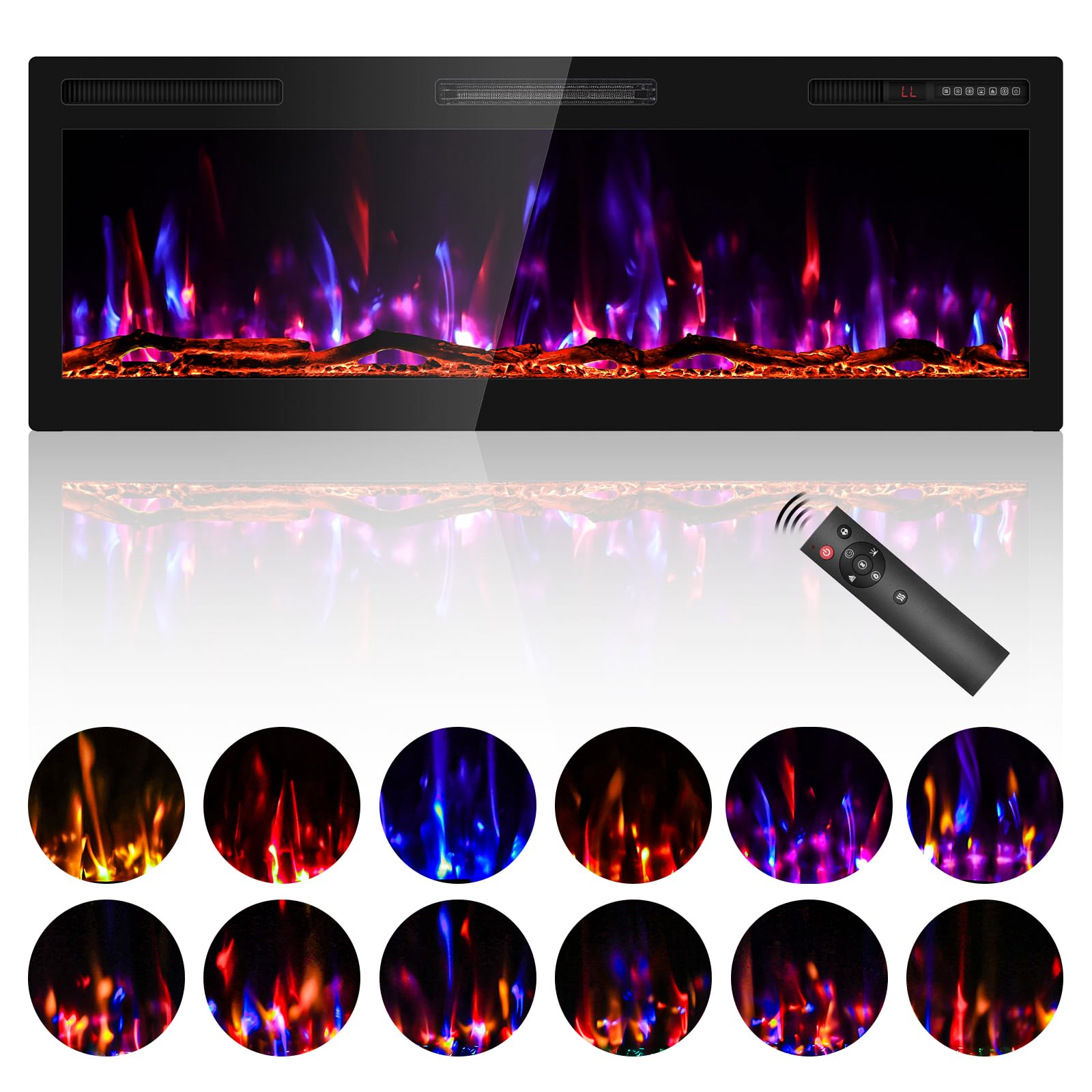 50 in Electric Fireplace Inserts - 1500/750W Ultra Narrow Frame Wall Mounted Fireplaces with 3 Heating Modes - 12 Flame Colors, Remote Control/Timer, Touch Screen, Low Noise