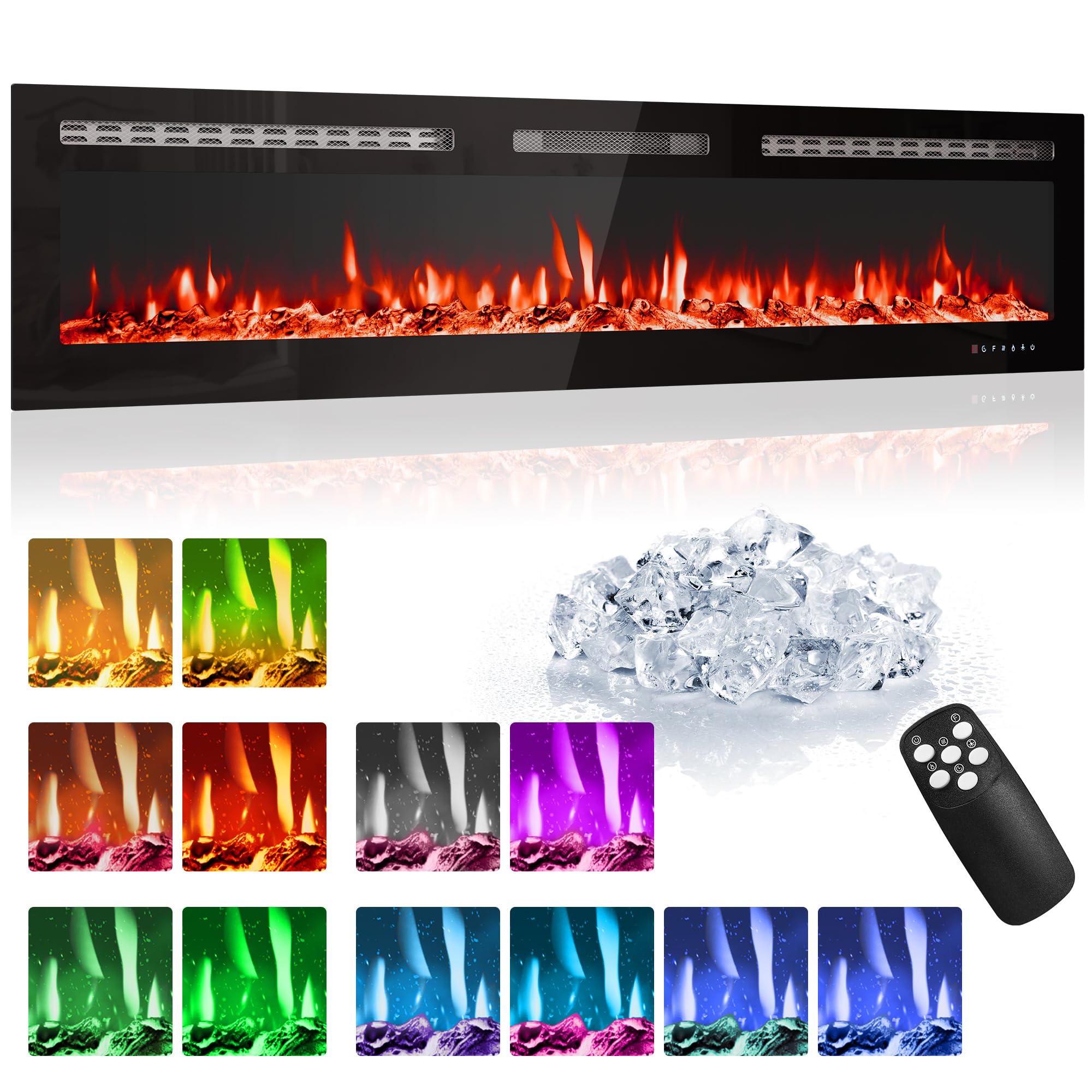 - Realistic Flames: 12 flame colors for this electric fireplace. Choose crystal or wood decor; 5 brightness levels – perfect for electric fireplaces in living rooms, RVs, and all your spaces.