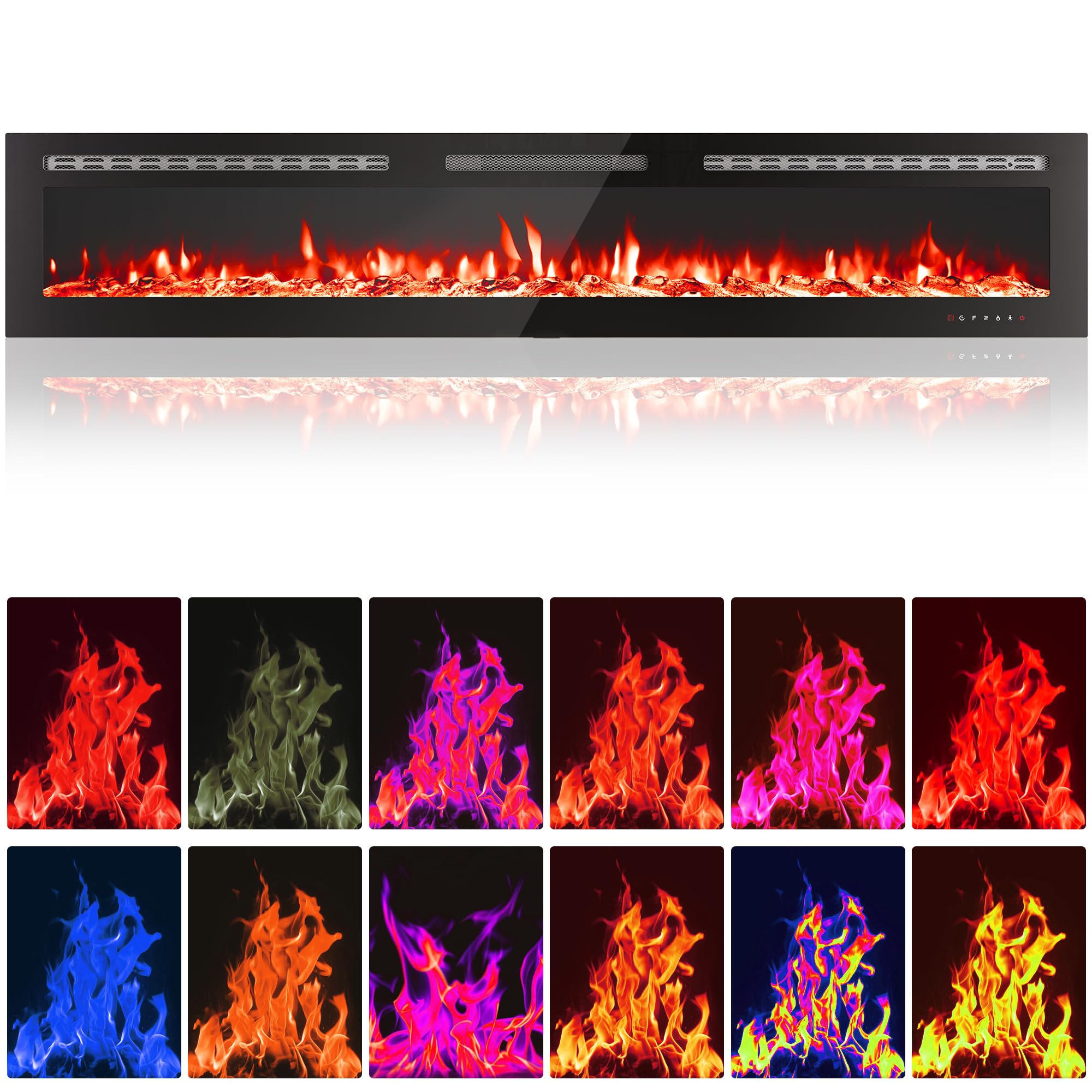 Garvee 50Inch Electric Fireplace Inserts - Ultra Narrow Frame Wall Mounted Fireplaces with 3 Heating Modes, 12 Flame Colors, Remote Control/Timer, Low Noise