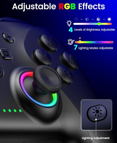 - 【Cool Lighting & All-in-One Charging Dock】Customize your gear with vibrant cool lighting (7 modes, 4 brightness levels). The included dock acts as a charger, storage stand, and display piece. It's the perfect charging station for your switch controllers. It includes smart charging indicators (Red: Charging | Green: Fully Charged) for clear status updates at a glance