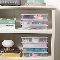 Secure Locking Clasp: Gray reinforced clasps protecting items from dust, and spills,ideal for long-term storage of documents, crafts, or small accessories Durable & Clear Material:Made of plastic, these transparent bins offer scratch-resistant surfaces and easy visibility to quickly locate contents Space-Saving Stackable: Uniform size allows vertical stacking to maximize cabinet or shelf space,perfect for organizing closets, pantries, and workstations Multi-Purpose Use: Versatile for storing office supplies, tools, or seasonal decorations,compact design fits under beds or in tight spaces Easy to Carry & Clean: Smooth handles on both sides for comfortable portability,wipe clean with damp cloth