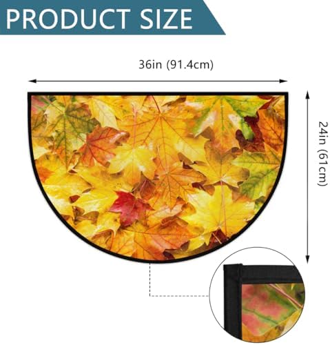 - PERFECT SIZE--36x24in / 91.4x61cm. This Fall Maple Autumn Leaf half moon rug is suitable for any room, bedroom, living room, dining room, children play, sitting room, conference room, hall, study room, bathroom, kitchen, office, corridor, entrance, patio, porch, hardwood floor, garage, indoor and outdoor decoration