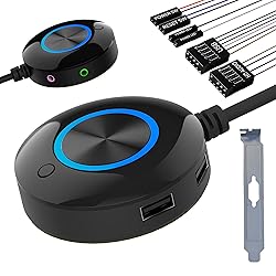 [External Desktop Power Switch]: Control your computer from any comfortable place in the room using the power button with a long cable. This power button makes it easier to turn on/off your PC tower power switch, even if your computer is in a hard-to-reach place. [1.6 Meter Cable PC Power Switch Control]: This power switch adapter comes with a 1.6 meter long power cord to keep you at a sufficient distance. [Easy to Install]: Simply connect the POWER SW and +HDD- connectors to the motherboard and glue the adhesive plate in the correct place. [Medium Size]: This PC power switch is only 2cm thick and the overall diameter is only 6.5cm, which will not take up much space, and the package includes 1* PC power switch with 1.6M cable; 1* Power software splitter cable. You can place or stick the tablet in a comfortable place. [Configuration Improvement]: This is a new computer desktop switch, not only with LED lights, but also with two USB ports, audio interfaces and restart switches, so that your computer is cool and solves the problem of insufficient interfaces.