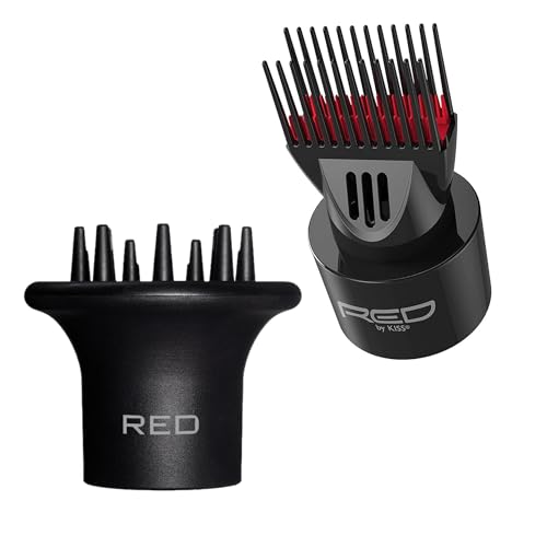 Red by Kiss Hair Dryer Accessory Bundle – Universal Diffuser with Long Prongs for Volume & Defined Curls & Double Layer Detangling Pik for Frizz-Free Blow Drying – Fits 99% Dryers for All Hair Types