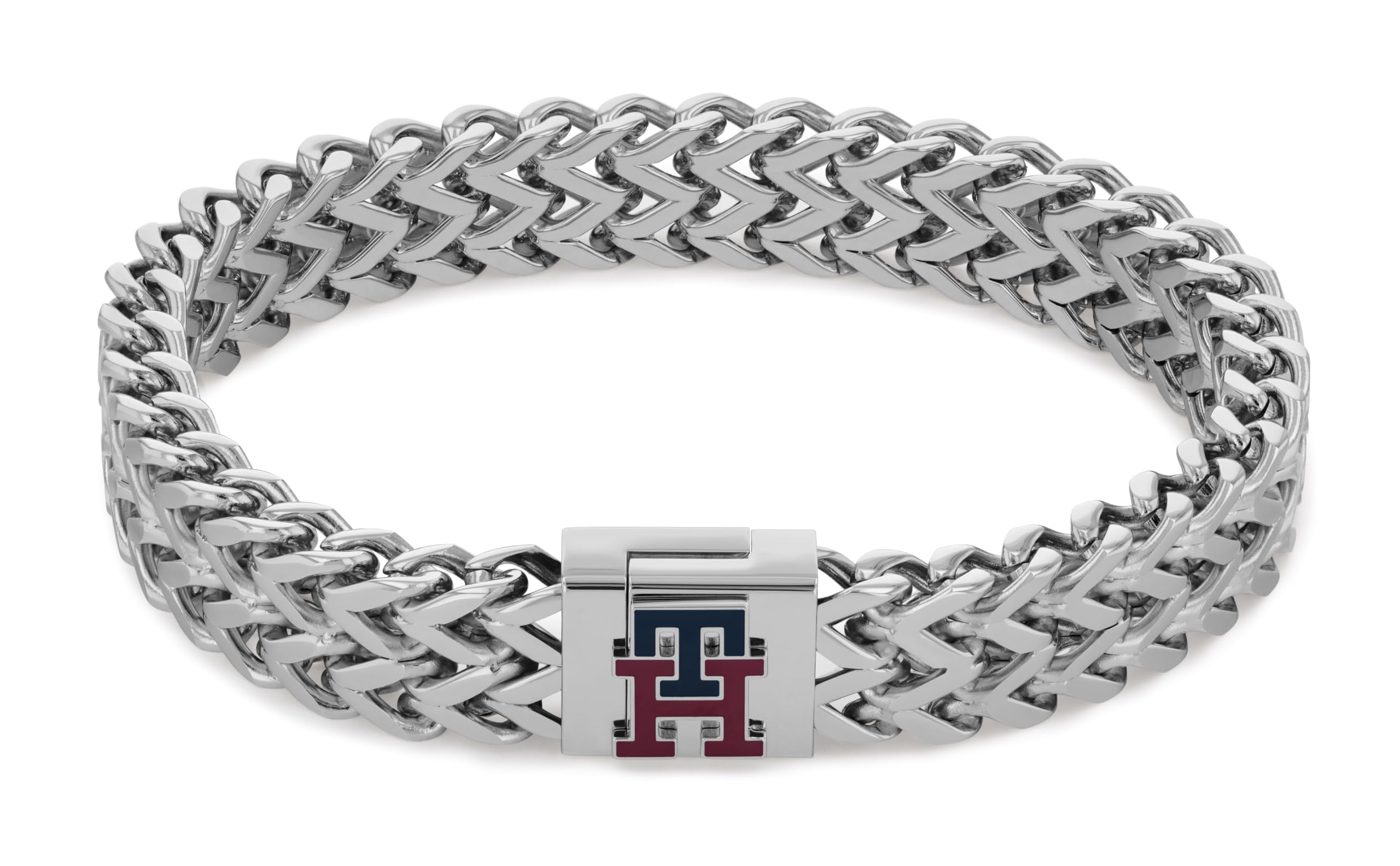 Tommy Hilfiger Men's Jewelry - Link Chain Bracelet – Bold Style, Fold-Over Clasp, Enamel Stripe Detail – Adjustable – Stainless Steel Accessory for Him