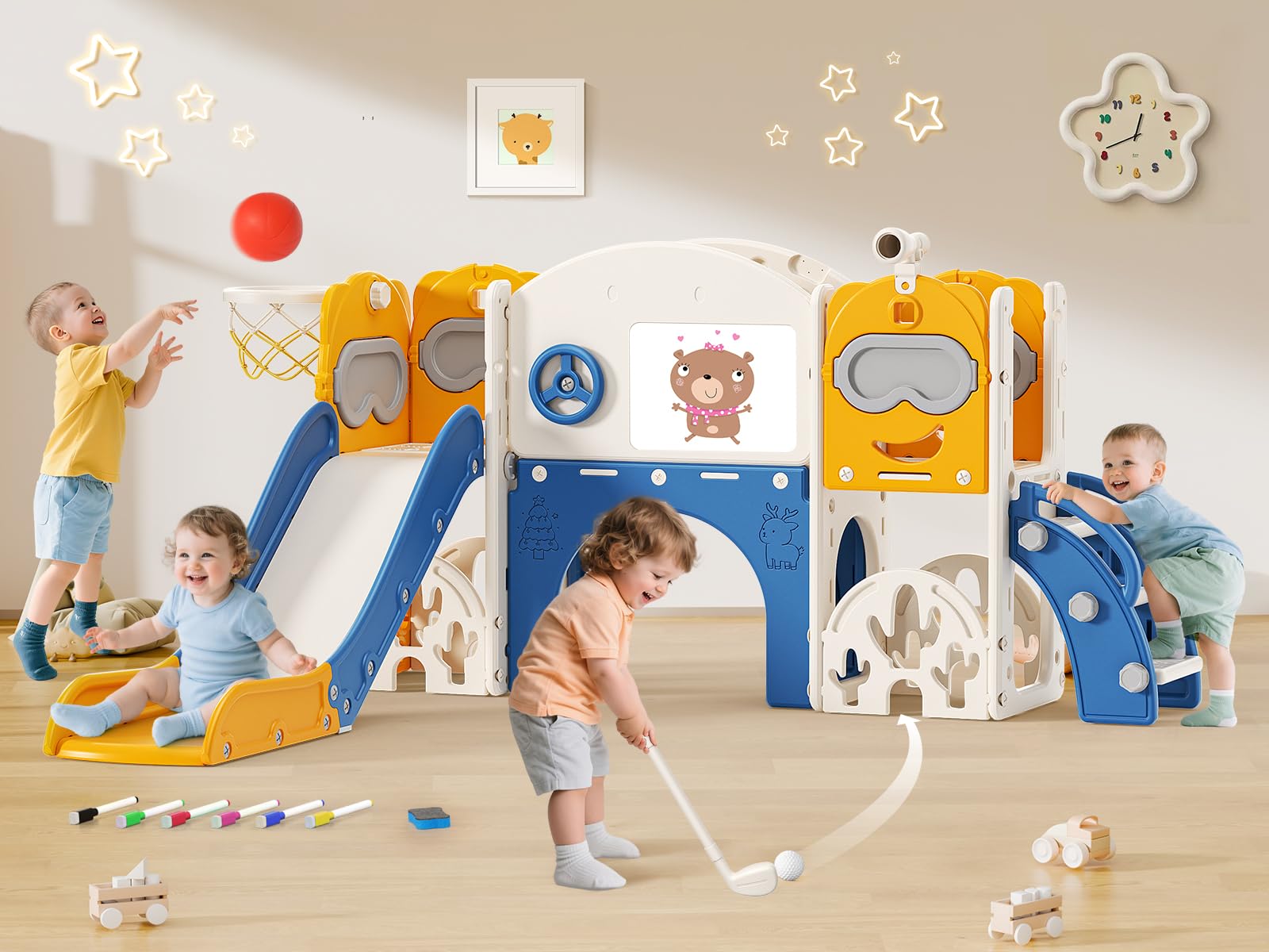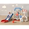 Toddler Slide, 6 in 1 Toddler Playset - Upgrade with Kids Slide, Swing, Soccer and Ring Toss for Age 1-3, Indoor and Outdoor Playground (Blue Red)