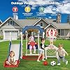 - 🎪 "Toddler Slide Playset New Upgrade" - Lischwert toddler slide incorporates 6 activity areas, Newly launched the Ring Toss and Soccer which parts others without, besides, the popular parts are also reserve, including slide way, swing, climbing, adjustable toddler basketball hoop, Our toddler slide outdoor play set helps kids to develop skills, promote fitness, balance and enhance the friendship while kids have fun