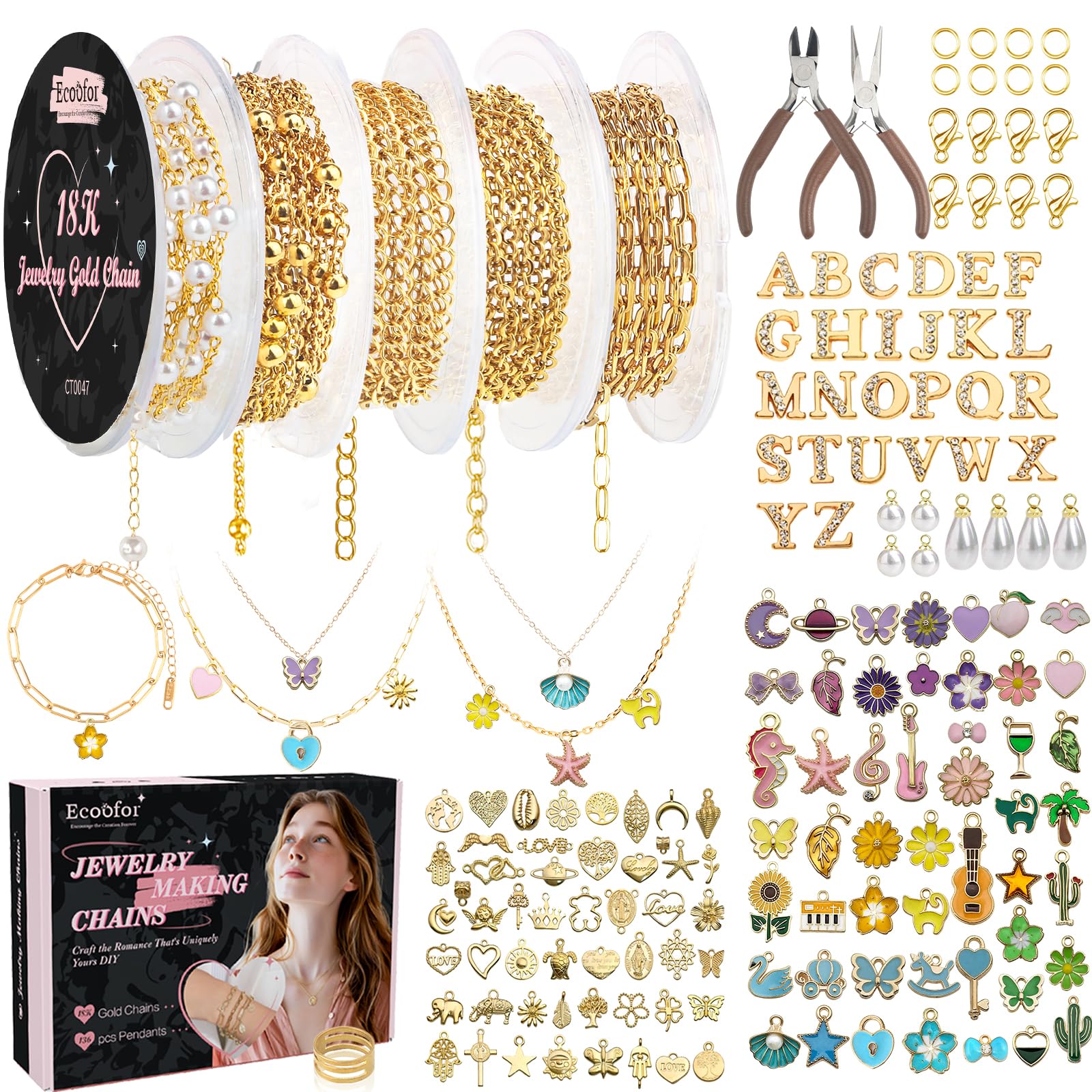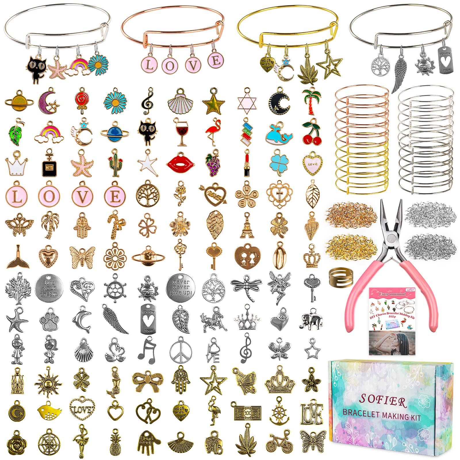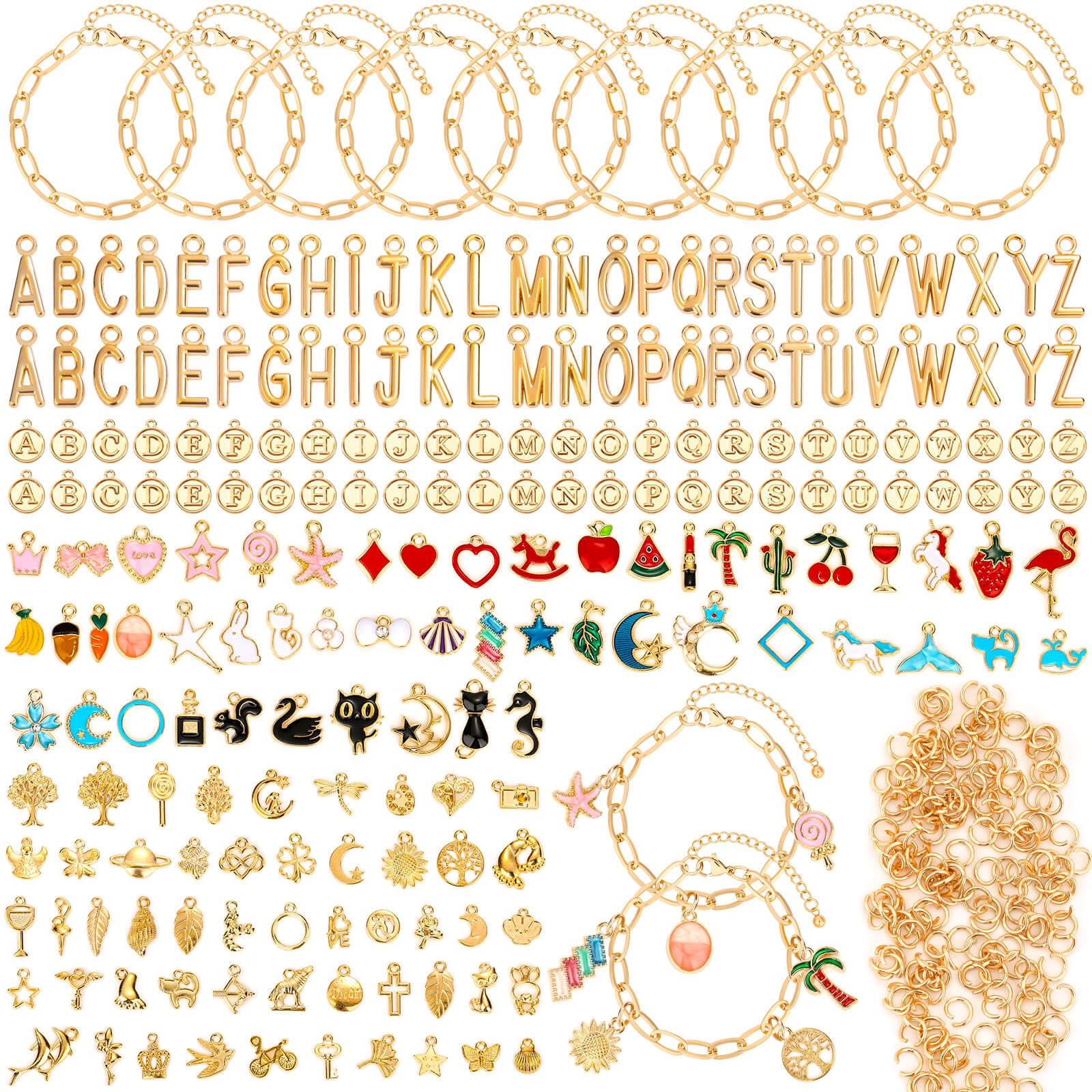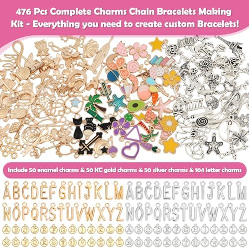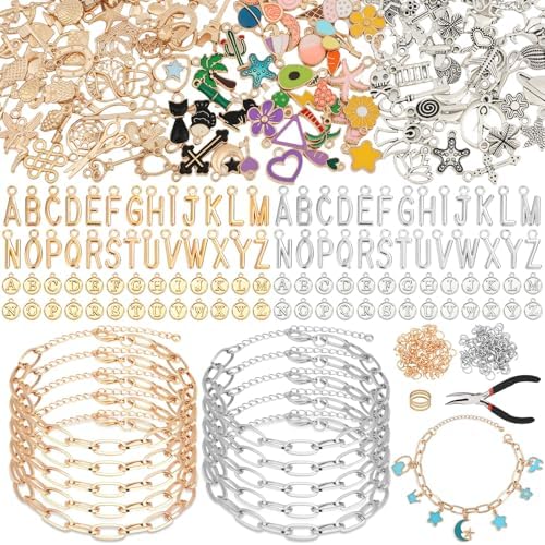 - 🎁 Complete DIY Charm Bracelet Making Kit: This all-in-one charm bracelet set includes everything you need. You get 20 paper clip bracelets, 150+ assorted pendants & charms, 104 letter charms, 200 split jump rings, a plier, and a ring. Perfect as a bracelet making kit with charms for endless creativity.