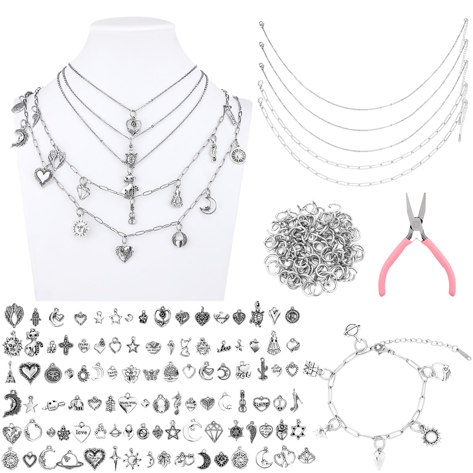 - 🔧 Easy-to-Use with Included Tools: Our bracelet making kit charms comes with a specialized plier to easily open and close jump rings. Attach charms and pendants to your paper clip base or any other jewelry in just a few simple steps, no experience needed.