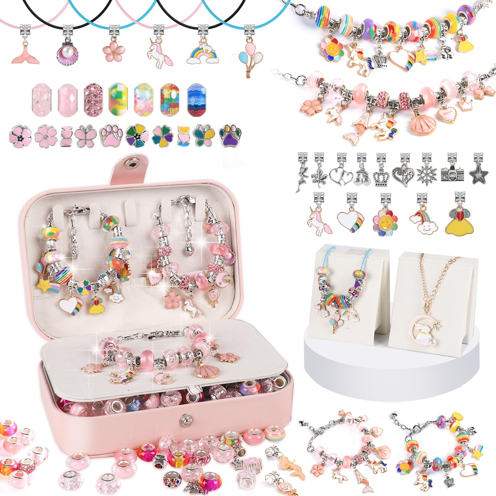- 💎 Premium Quality & Organized Storage: All components in this charm bracelet kit are made from high-quality, skin-friendly materials. The entire charm bracelet making kit is neatly packaged in a clear plastic case for easy organization and portability.