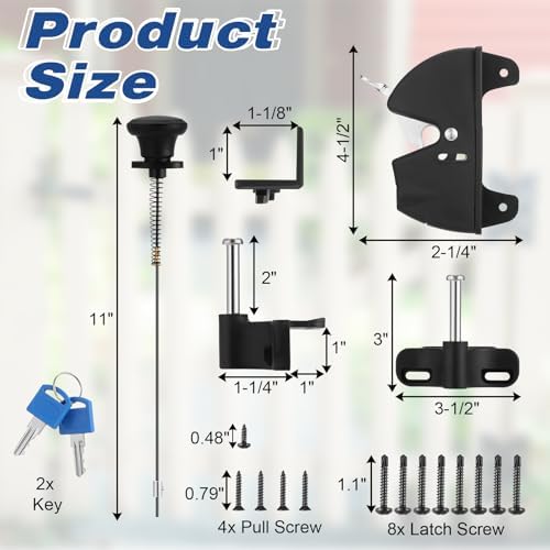 - Reversible Design for Versatile Fit: Adjustable vertically and horizontally, the key lockable fence gate latch suits left or right-hinged gates, square posts, and various fence types (wood, metal, vinyl). It accommodates fence posts 1"–6" deep and gate-to-fence gaps of 3/8"–1-1/4", ensuring a proper fit for diverse outdoor setups