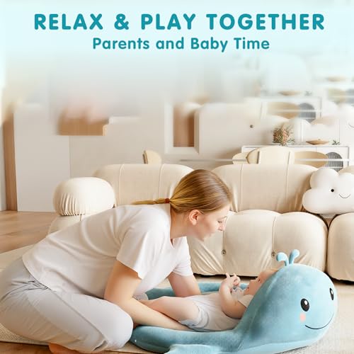 - 【Adorable Whale-Shaped Baby Play Mat】 This ocean-themed baby play mat is designed as a playful whale, perfect for tummy time, crawling, and floor play. Its soft curves and tail details capture baby’s attention, making it an engaging playmat for babies 0–6 months and beyond. A must-have newborn baby essential that doubles as stylish baby room essentials.