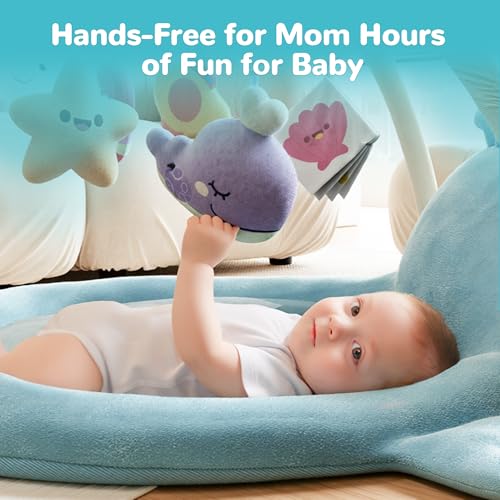 - 【Baby Gym & Activity Center for Infants】 More than just a baby floor play mat, this whale base includes a cross-arch baby play gym with hanging toys at eye level. Babies from 0–6 months to 6–12 months can practice reaching, grasping, and motor coordination—an all-in-one baby activity mat and play gym mat.