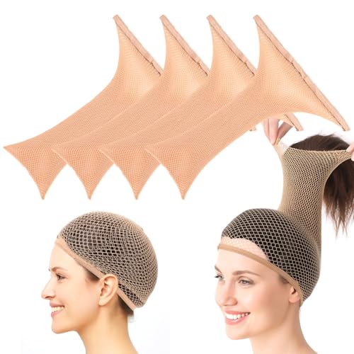 4Pcs Wig Cap Hair Net for Wigs 22 CM Large Mesh Wig Cap for Long Hair for Women Nylon Net Non Slip Natural Nude Strength Wigs Caps for Halloween Rave Party Cosplay