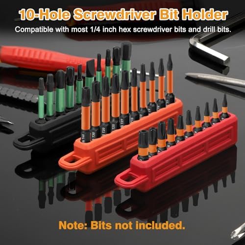 - 10 Holder Storage: Each screwdriver bit storage organizer has 10 slots to separate different bits, keeping them organized and easy to grab