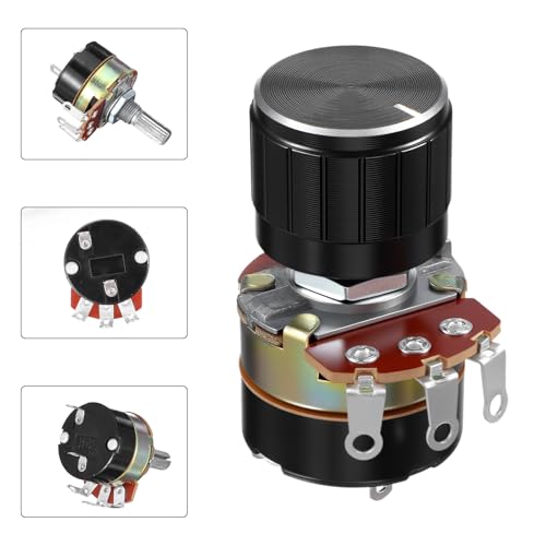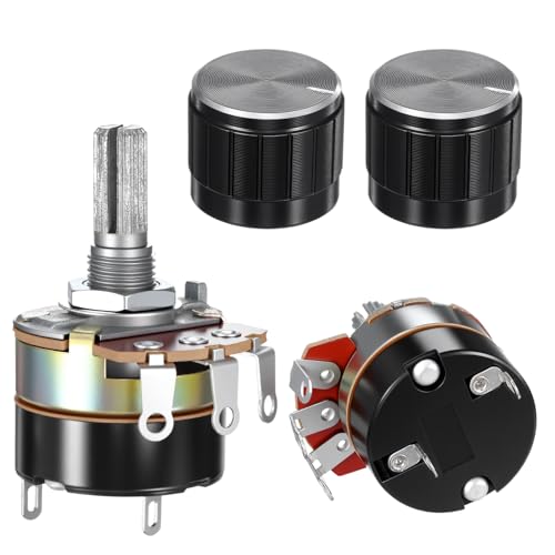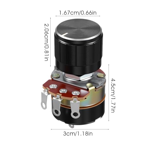 2 Pcs 10k Potentiometer, Variable Resistor Knobs, Single Linear Taper Dimmer Potentiometers Switch Rotary Variable Metal Potentiometer with 2 Rotate Knob Inverter Speed Regulation