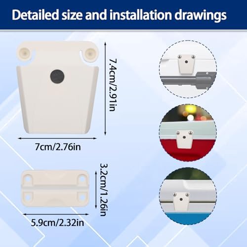 Specification: Color: white Material: plastic, stainless steel Product Size: hinge: 7.4x7cm/2.91x2.76in, latch: 5.9x3.2cm/2.32x1.26in Package details: 3 x cooler hinge 2 x latch 2 x cooler post replacement parts 18 x screws Note: Due to manual measurement, the size and weight may have a certain error. Due to the difference between different monitors, there may be a slight color difference existed.