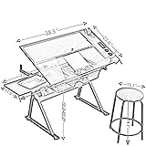 Drafting Table w/Stool, Height Adjustable Drawing Table, Multifunctional Art Craft Paintings Work Station w/2 Storage Drawers Artists Desk Tilting Glass Tabletop for Home Office White
