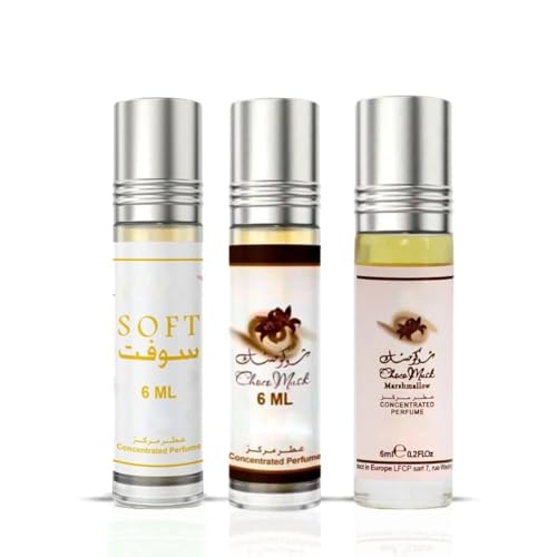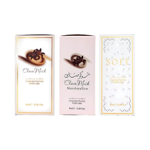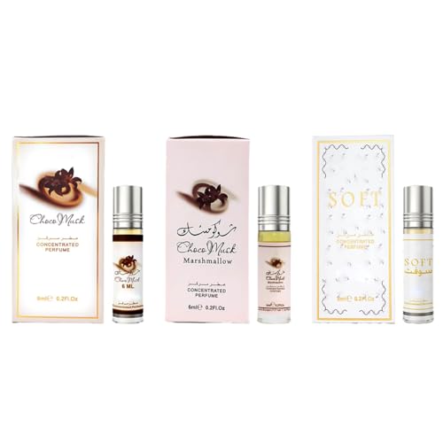 - 3-PACK PERFUME OIL SET – Includes Choco Musk (6 ml), Choco Musk Marshmallow (6 ml), and Soft (6 ml), offering a rich variety of scents to suit every mood and occasion.