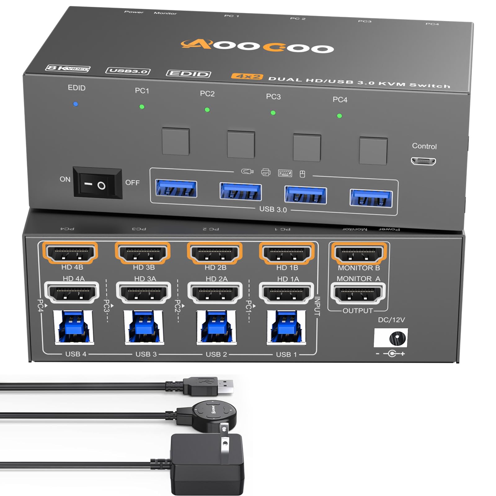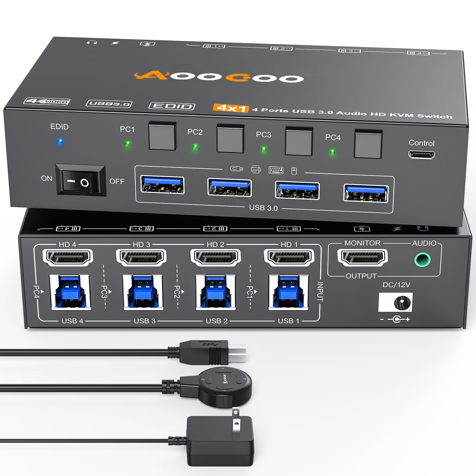- 【3 Monitors KVM Switches with 4 USB 3.0 Ports】Triple monitor HDMI+2 Displayport KVM switch with 4 USB 3.0 ports which can recognize keyboard,mouse,printer,scaner and other USB devices. USB 3.0 offers data transfer speeds of up to 5Gbps, while USB 2.0 offers data transfer speeds of only 480Mbps.