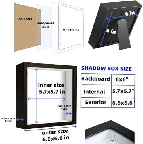 - 【Perfect Size & Adequate Depth】This 6x6 inch shadow box frame features a 1.2-inch deep interior, providing ample space to showcase thick items like preserved flowers, pet paw prints, wedding boutonnieres, or layered memorabilia. Unlike shallow frames, it keeps your treasures securely in place without crushing or bending, ensuring every detail of your precious items is clearly displayed.
