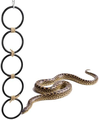 Feature: 5-rings Design--Features 5 vertically arranged wooden rings connected with rope. Snake Safe Toy--Made of rounded ABS plastic, safe and no edges. Enrichment Climbing Toys--provide physical activity and mental stimulation for your pet snake or other climbing reptiles. Specification: size: 21.7inches/55cm color: black Product Include: 1 x Snake Climbing Rings Toy Note: Due to manual measurement, the size and weight may have a certain error. Due to the difference between different monitors, there may be a slight color difference existed.